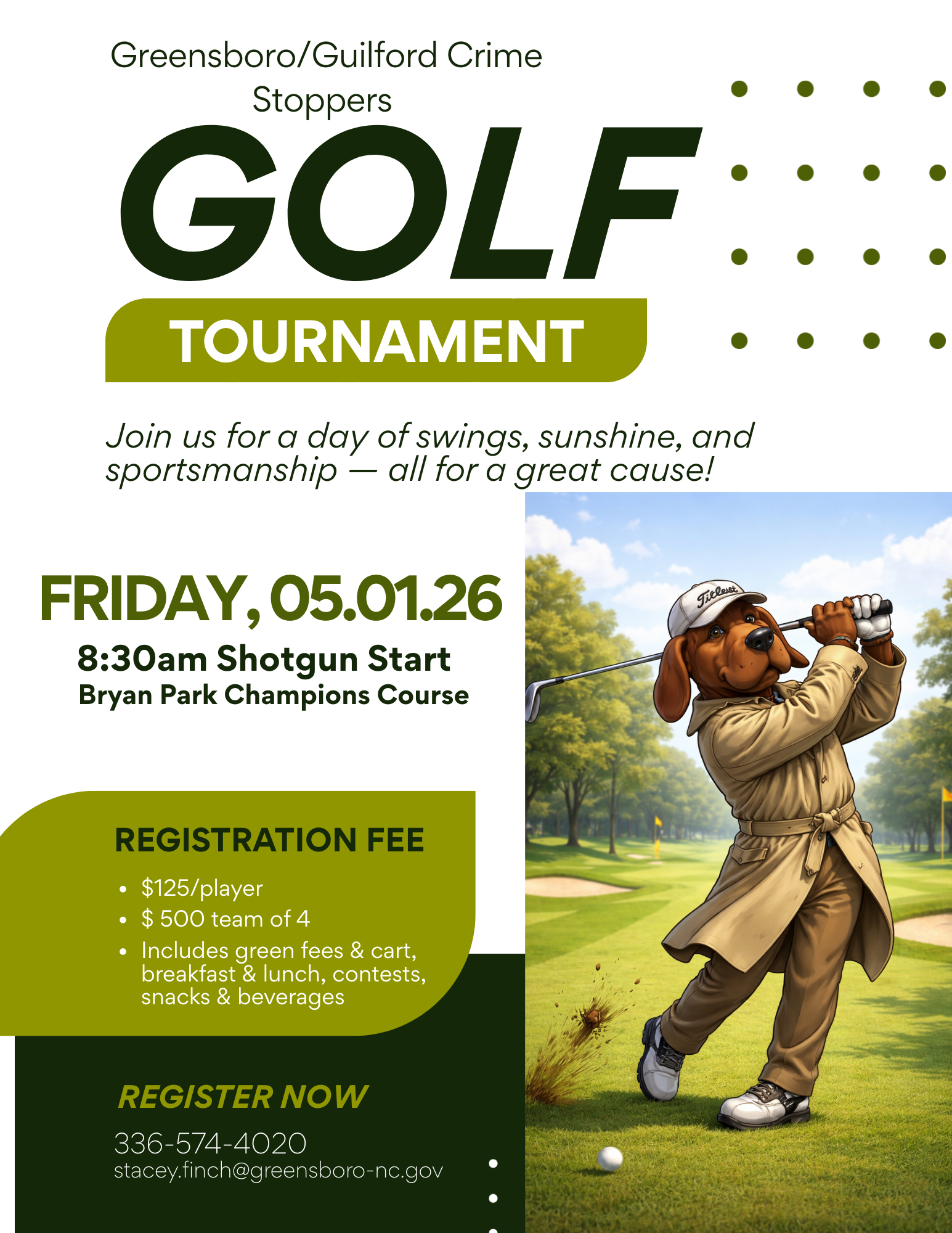 The 31st Annual Gso/Guilford Crime Stoppers Golf Tournament is scheduled for Friday, May 1st, 2026!